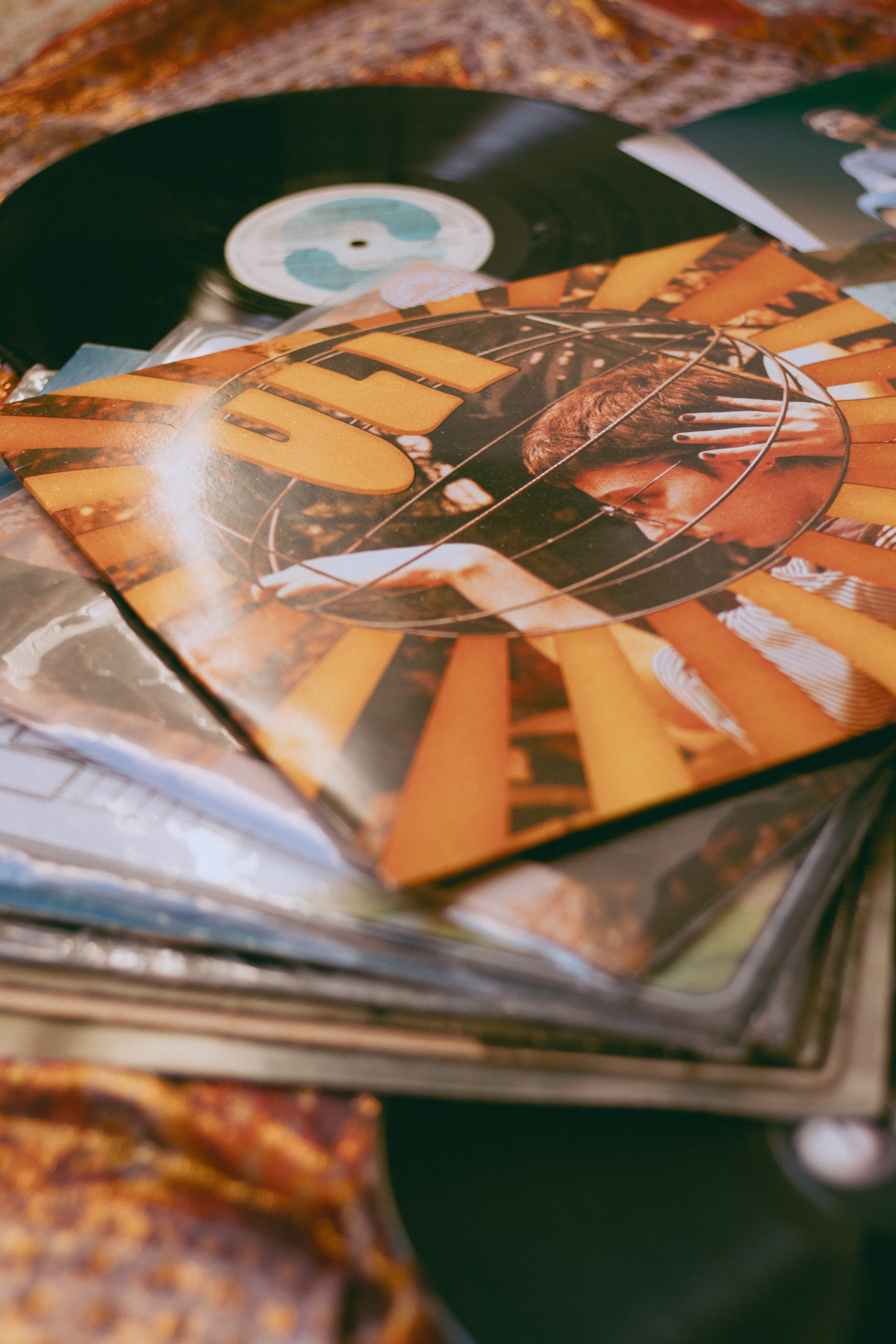 O Vinil de Uli foi o primeiro vinil produzido por mim. Trazendo elementos gráficos que remontam artes de capa dos anos 60, a capa explora o elemento esférico que compôs alguns retratos do ensaio transformando-o em um sol pulsante.